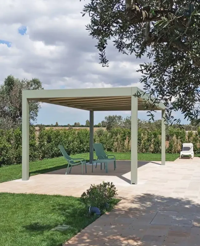 BT Group progetta e realizza pergole bioclimatiche, tende da sole e strutture per esterni 100% Made in Italy. Le pergole bioclimatiche offrono lamelle orientabili, motorizzazioni avanzate, illuminazione LED e chiusure integrate. Completano l’offerta pergolati tradizionali, tende a bracci, a caduta e soluzioni personalizzabili in alluminio o tessuto tecnico, ideali per spazi residenziali e contract.